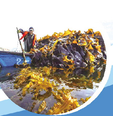 渔民在海洋牧场收获海带。(张吉华 摄)