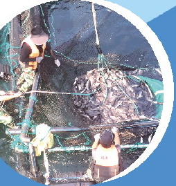 “经海006”深远海智能网箱提网收鱼。(聂英杰 摄)