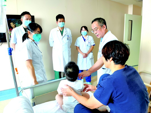 张文安(右1)带领团队查房。