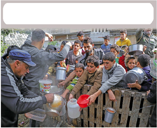 11月19日,在加沙地带南部城市拉法,人们领取救济食物。 新华社发