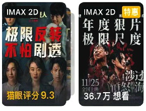 作为一种营销方式,模式化的大字海报常用于购票平台,以刺激观众的购买欲。有数据显示,从2022年末开始,大字电影海报已经成为一种趋势。海报用词简洁,必看、首选、年度第一、极限、轻松、爆笑、反转等词经常出现,大字海报像广告一样,给观众营造出一种洗脑、重复的视觉效果。