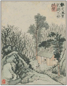 清代石涛《陶渊明诗意图册之〈责子〉图(局部)》。 来源/故宫博物院