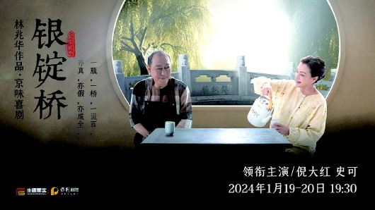 2024年1月19—20日,由林兆华导演,崔释匀编剧,“舞台大神”倪大红、“话剧女王”史可领衔主演的明星版京味儿喜剧《银锭桥》将作为2024年开年大戏,在烟台大剧院连演2场。