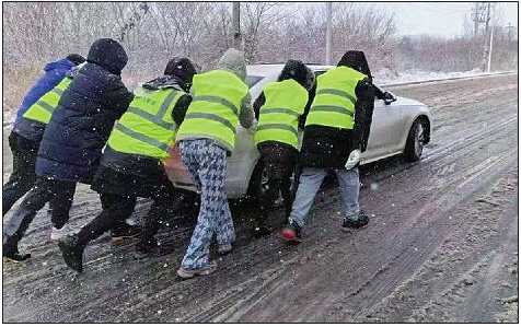 12月11日早上,济南公交东部公司出动7支应急突击队,在陡坡、桥洞、调头口等位置除雪破冰。7时10分,东部公司六队突击队员前往275路沿线清理积雪路面,途经韩仓河东路彭家北路时,有不少私家车打滑。突击队员发现情况后,立刻变身“推车侠”,帮助私家车主将车辆推至平缓路段。没多久,又有私家车在附近陡坡处打滑无法前行,队员们再次伸出援助之手。记者发稿时,济南公交东部公司突击队已帮助50多位私家车主。 记者 于泊升 摄影报道