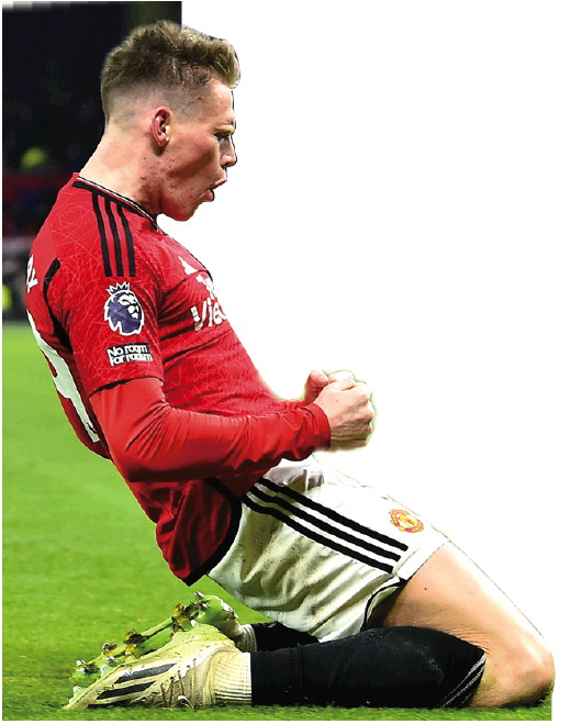 曼联“起死回生”并不容易。图为曼联球员麦克托米奈庆祝进球。 新华社发
