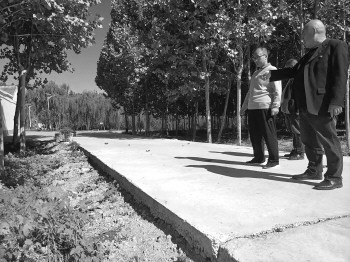 于是,姜辛庄村组织施工人员填垫部分坑塘,沿着老两口房屋的东侧铺了一条约50米长、4米宽的硬化路。施工时,老两口静静坐在院里,外面的机器轰鸣声格外悦耳。