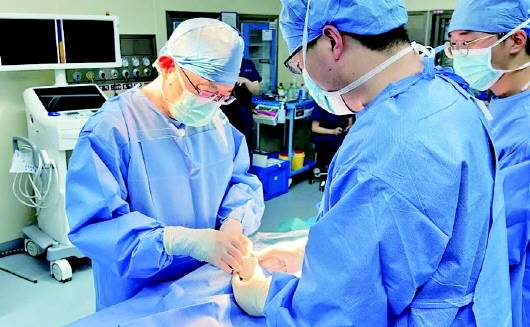 医生为杜女士实施了癫痫的脑深部电刺激手术,植入了智能可感知脑起搏器。手术中将两个刺激电极精准植入患者的双侧丘脑前核,将智能脉冲刺激器埋于胸前。手术历经4小时,顺利将电极成功植入核团,手术圆满成功。