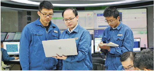 魏卓在与信息运检班的同事们讨论QC成果。 通讯员 何延海 摄