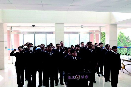 “我宣誓,忠于中华人民共和国宪法……”12月4日,荣成市法院、检察院、司法局、商务局、交通运输局、妇联、埠柳镇、成山镇等单位,组织机关干部开展宪法宣誓活动,传递了宪法至上精神。