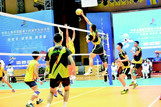 2021年7月15日,在第十四届全国学生运动会上,代表山东出战的单县一中排球队勇夺中学男子组季军,刷新了山东省参加该项赛事的历史最好成绩。 (资料片)