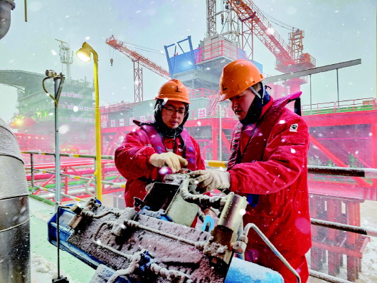 近日,胜利海上油区遭遇今冬最强暴风雪,胜利油田海洋采油厂中心三号平台干部员工按照统一部署,迅速加密生产设备设施巡检力度,确保油气生产平稳运行。