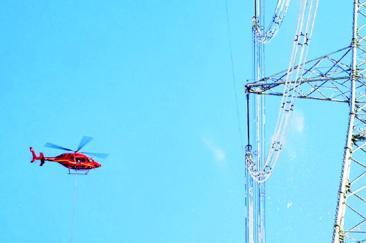 12月17日,受山东大范围雨雪降温天气影响,1000千伏泉乐线出现覆冰。本着“安全第一、最快修复”的原则,国网山东电力首次采用直升机作业形式对特高压输电线路开展消缺(消缺是电力行业术语,指消除缺陷,使有异常、有缺陷的设备恢复正常的过程),在保障人员安全的前提下,以最快速度消除了设备隐患,提升了雨雪冰冻天气下电力“大动脉”的健康水平。