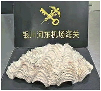今年11月,银川河东机场海关在一迪拜入境旅客行李箱内发现一件大贝壳,经鉴定为砗磲,重1.5公斤,是宁夏首次查获的砗磲贝壳实体,也是查获单体重量最大的濒危物种。