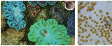 砗磲和珊瑚一样,贝肉中共生着多种虫黄藻,能在夜晚发出耀眼的荧光,五颜六色,非常漂亮。砗磲为虫黄藻提供“住所”及光合作用原料,而虫黄藻通过光合作用,为砗磲提供必要的营养。