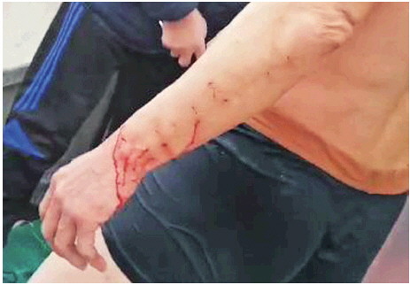 从下河救人到把环卫工人救上岸,前后用了不到5分钟。待王建民上岸后,众人才发现只穿着泳衣的他身上多处被冰划伤,“当时就想着怎么赶紧把人救上岸,根本没感觉到身上流血。”王建民笑着说。围观的市民想让他抬起胳膊记录下他被冰层划伤的双手,他连忙摆手笑着拒绝道:“没事,没事!”