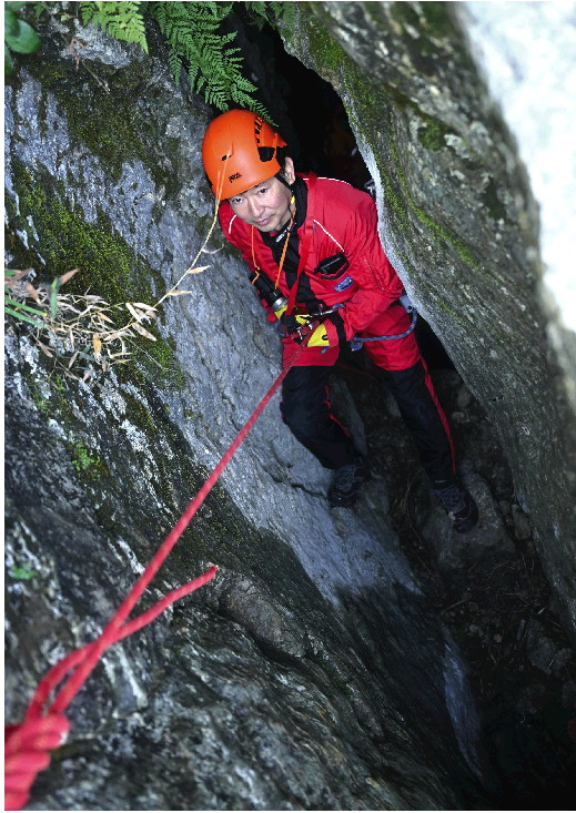 天涯2018年之前在电视媒体工作,离职后投入互联网行业自主创业。2015年底,天涯接触到了绳索技术,立刻爱上了这项极限运动。他去了中法探洞学校学习,在亚洲最大最长的贵州双河洞进行训练。学习回来后,天涯开始在济南周边到处找洞探洞,有时候也会去探外地的洞。渐渐地,天涯的身边会聚了不少有着同样爱好的人,在天涯的带领下,每周末大家都聚在一起,带上装备在峭壁悬崖训练,深入洞穴探秘。