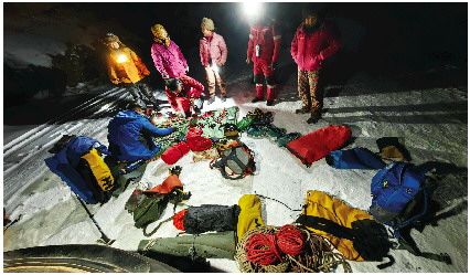 天涯和队员们正在整理探洞的装备。