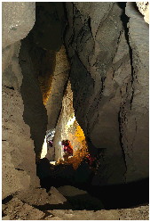 天涯本名姓李,70后,大家都称呼他天涯队长。白云洞,他已经带队来过七八次了,对于这里的地形和洞内情况,他了如指掌。寒冬腊月的天气,山顶的风刺骨得冷,洞口却十分温暖,“冬天洞内温度稳定在十五六摄氏度,非常暖和。”在天涯的带领和指导下,利用专业的绳索技术,大家陆续下降,深入洞内一探究竟。“洞内有大量的钟乳石,非常壮观。洞内底部是一个平坦泥沙形成的水道,雨季时会有水流。”天涯说。