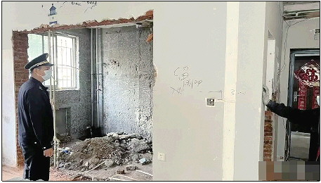 2022年,青岛香港东路一小区业主装修砸了多处承重墙,执法部门限期一周内恢复并加固。(资料片) 记者 台雪超 摄
