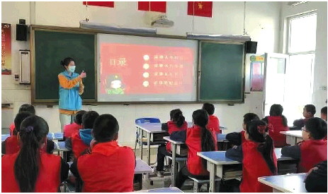 壹点公益联合齐鲁工业大学生物工程学部志愿者团队走进济南市长清区五峰山朱庄小学,为孩子们上公益课。 记者 王丽 摄