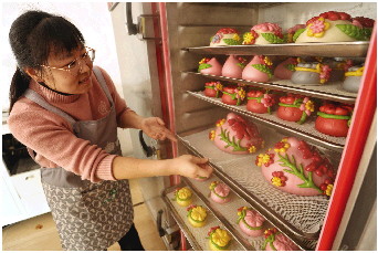 隋雯雯把制作花饽饽的手艺教给村里的妇女,增加她们的收入。