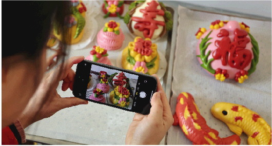 隋雯雯把花饽饽拍照发到网络上拓宽销路。
