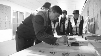 零工客栈的工作人员表示,到了年根很多零工准备回家过年了,客栈领导突然想到可以让零工们练练书法,这样写福字和对联可以捎带回家去,省着到时候回家还需要买。而且通过写对联和书法还能陶冶情操。