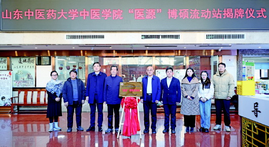 山东中医药大学中医学院党委书记姜锡斌与李树沛院长共同为山东中医药大学中医学院“医源”博硕流动站揭牌。