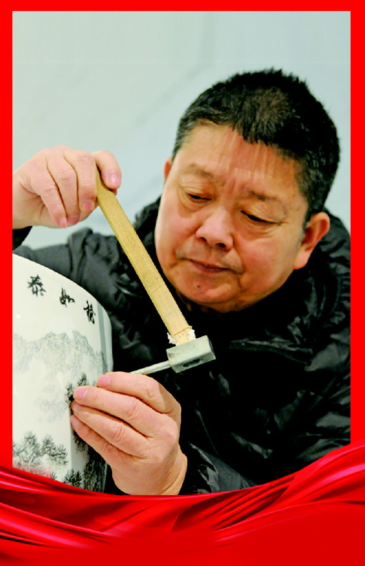 刘永强说,他从小就喜欢写写画画,1985年从山东省轻工美术学校毕业后,被分配到淄博瓷厂科研所工作。他抓住一切学习机会,勤奋苦练,在张明文、李梓源等国家级大师影响带动下,经过多年的艰苦努力,形成了自己独特的艺术风格,在刻瓷界是出了名的“一刀准”。