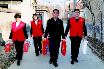 高密市党员雷峰团的党员志愿者们正在进行志愿服务。