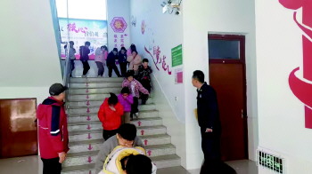 疏散逃生和灭火实战演练正在潍坊青州口埠学校开展。
