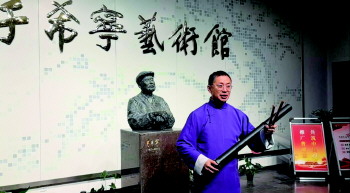 任健在于希宁艺术馆表演自编自导的渔鼓书作品。