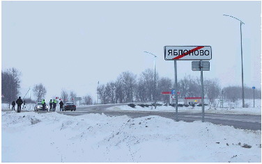 25日,在俄罗斯别尔哥罗德州,警察在坠机地点附近封锁道路。