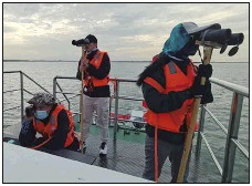 科考队员目视考察是最核心的部分,采用截线抽样法。考察船前方的自动影像辅助系统,也在同步采集影像资料,记录长江沿岸带生境、岸线、航运等环境信息,辅以后期AI识别,能在一定程度上弥补观察队员的估算误差。