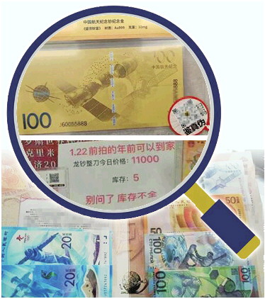 重庆的韩先生向记者反映,去年年底,自己花费200多元,在某直播间购买了一套“中国航天纪念钞纪念金”,本以为淘到低价好物,过年给孩子包红包,谁料却成了闹心事。
