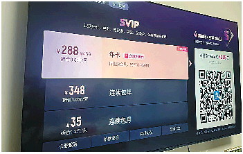 某视频软件在电视上的SVIP年卡费用为288元。