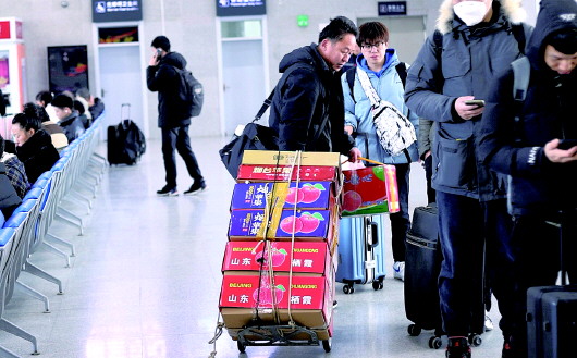 1月26日零时起,2024年春运正式开始,至3月5日24时结束,共计40天。据了解,春运首日,烟台车务段客流比较平稳,预计腊月二十五左右进入客流高峰。在烟台南站,记者发现烟台苹果和海鲜成为许多外地旅客归乡的“标配”。