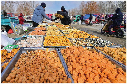 春节临近,青州市云门山街道一家集贸市场上,人们热热闹闹置办年货。 新华社发