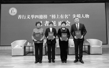 四位四德榜先模人物领取证书。