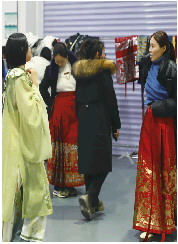 “原来的马面裙是以黑色、红色为主,现在主推的春季款是浅色系,还将原来上轻下重的面料改为高精高密的宋锦面料。”张明强说,“新产品虽然还没有正式推出,但已有客户预订了两三千条。”