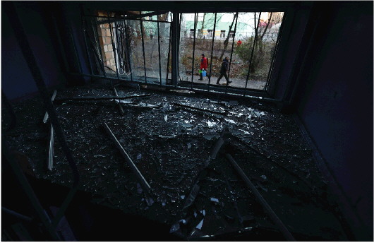 这是2023年11月25日在乌克兰首都基辅拍摄的因无人机袭击受损的房屋。 新华/路透