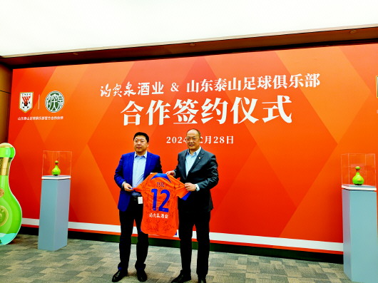 作为新赛季的高级合作伙伴,趵突泉酒业将为山东泰山足球俱乐部的建设发展提供有力保障,同时也期待未来能开展一系列的品牌联动,整合双方优势,实现资源共享,品牌口碑双向渗透,将趵突泉酒业的品质文化与山东泰山的体育精神相结合,进一步推进实体经济与体育事业的联合发展。