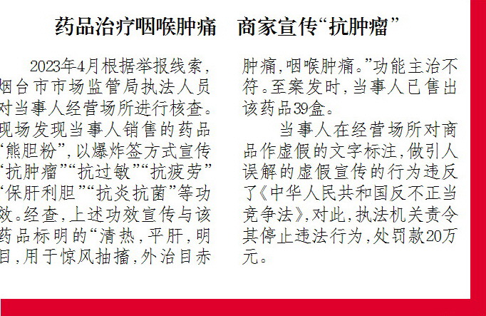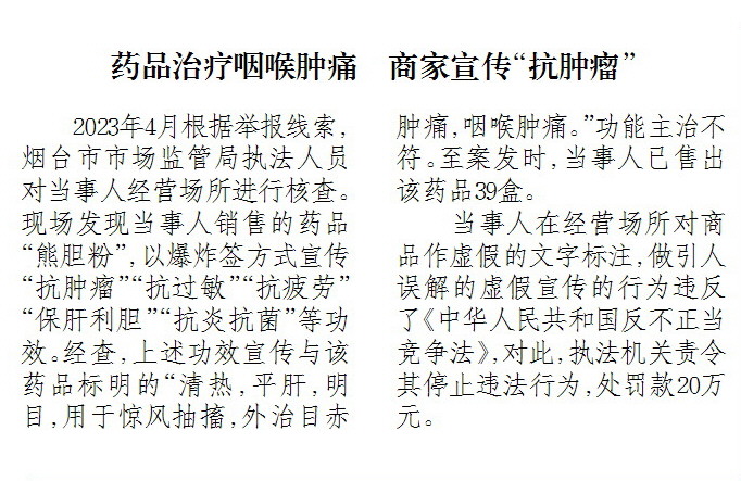 药品治疗咽喉肿痛 商家宣传“抗肿瘤”