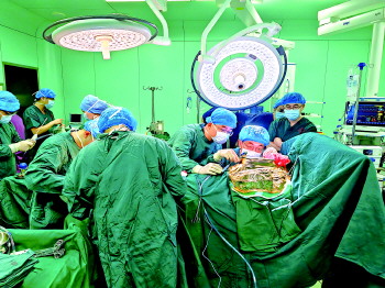 麻醉、开胸,暴露心脏,建立体外循环,心脏停搏、复跳……2月22日一早,在济宁市第三人民医院层流手术室里,心电监护仪上的波形有规律地闪动着,发出让人安心的滴答声;无影灯下,该院首例“冠状动脉旁路移植术”正紧张地进行中,在山东大学第二医院心血管外科主任庞昕焱和济宁市第三人民医院胸外科医生王凯、史长任共同协作、默契配合下,经过近5个小时的鏖战,兖州区首台心脏外科手术获得圆满成功。