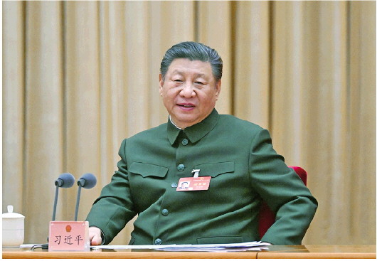 3月7日下午,中共中央总书记、国家主席、中央军委主席习近平出席十四届全国人大二次会议解放军和武警部队代表团全体会议并发表重要讲话。 新华社发