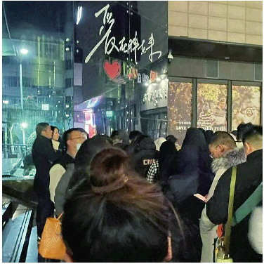 有网友发文称,凌晨时分,已有不少顾客在胖东来门前排队。(网络图片)