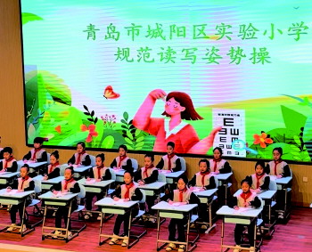 3月19日,青岛市举行第八个全国近视防控宣传教育月启动现场交流活动暨全市中小学校卫生工作会。与会人员会前参观了崂山区松岭路小学,了解了学校近视预防相关工作。在活动中,各学校还带来了爱眼护眼儿歌、爱眼护眼情景剧、规范读写姿势操等表演。