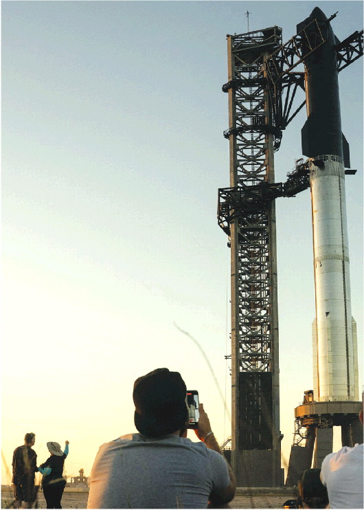 2023年11月17日,人们在美国得克萨斯州博卡奇卡的基地等待“星舰”第二次试射。 新华/路透