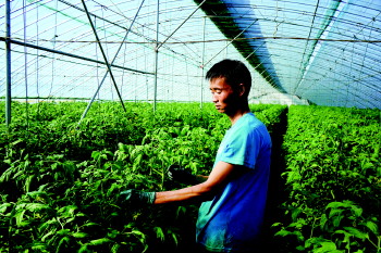 “点了花之后还需要选柿子、打岔子、盘柿子。”刘磊种了4个大棚的西红柿,由于采用早春棚种植,光照时间成为西红柿成熟的重要因素,预计收获期将从4月份持续到5月初,4个大棚能结出近5万斤的西红柿。“刘营村的西红柿营养价值很高,口感比普通的西红柿好,市面上每斤能卖到6元。”刘磊说,自己从1999年开始利用大棚种植西红柿,平日里都是他和妻子一起打理,收获的季节再雇人来帮忙,“一年下来西红柿能卖将近20万,纯利润也有十来万。”刘磊对这个收入很满意。聊起种植大棚西红柿之前的年收入时,刘磊摇摇头说:“那时候就是种农作物,一年下来顶多挣个两三千元。”农闲时出远门打工,如此一对比,刘磊对现在的日子很知足。
