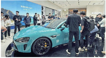 ◤小米汽车深业上城门店人气旺。